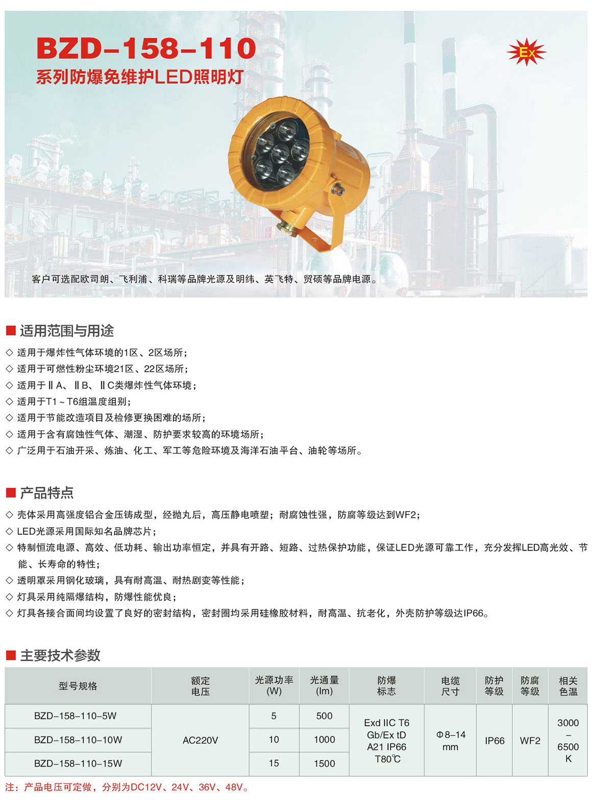 BZD-158-110系列防爆免维护LED照明灯(ⅡC)