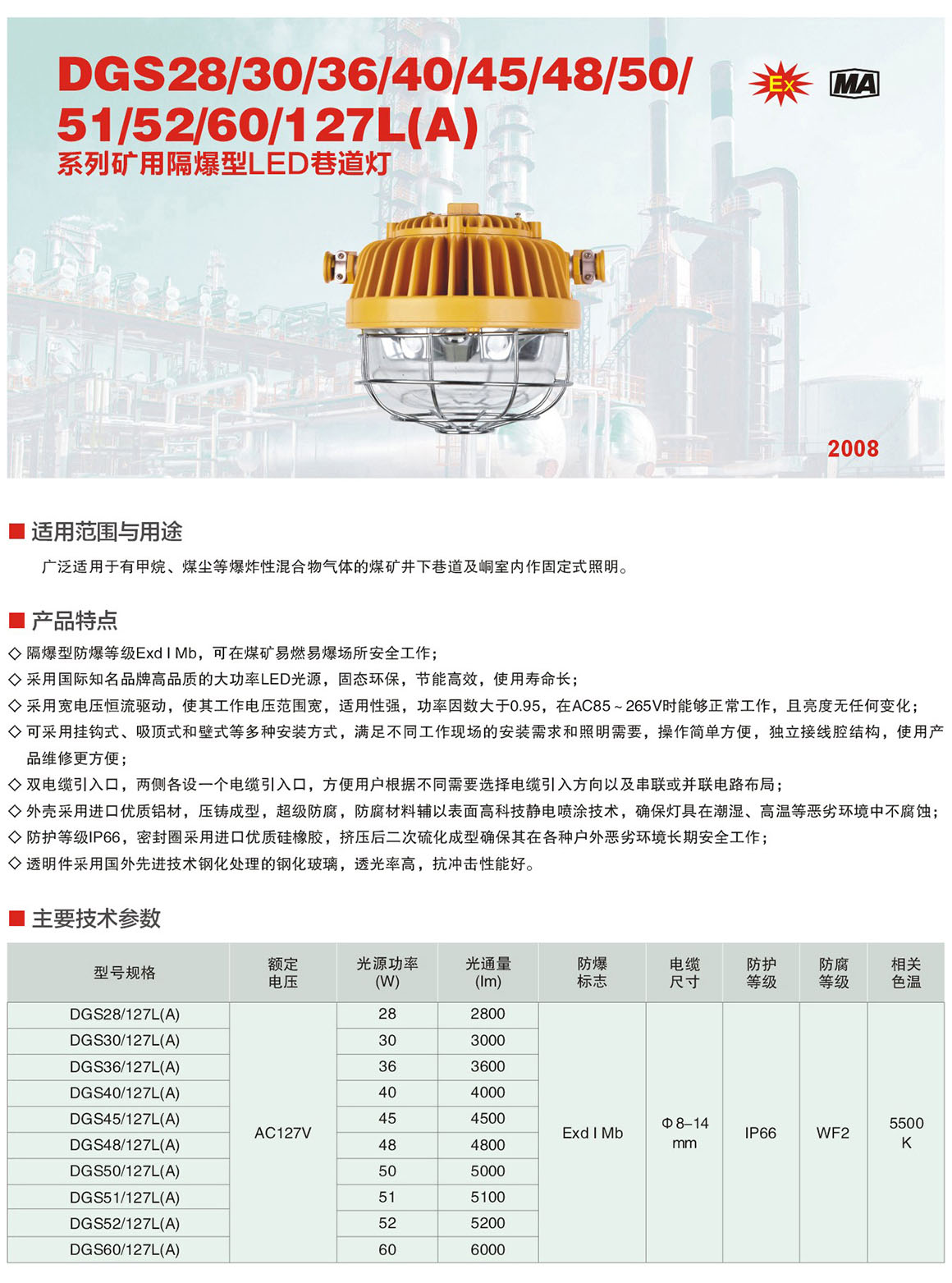DGS50/127L(A)系列矿用隔爆型LED巷道灯