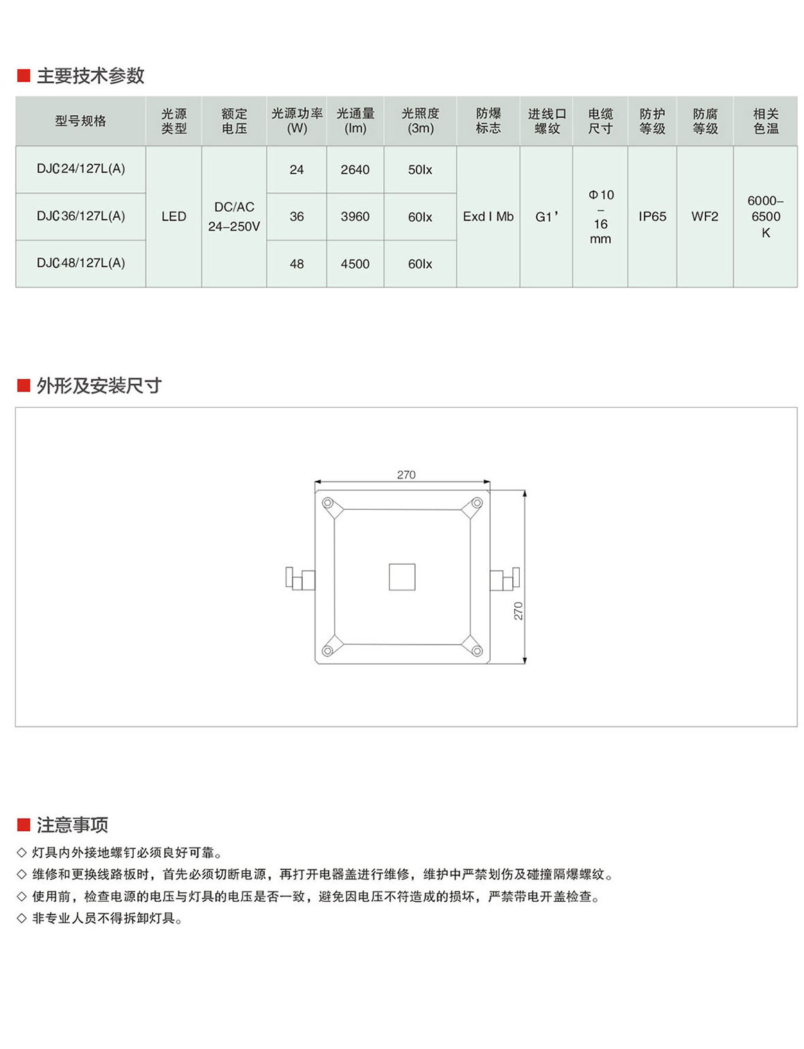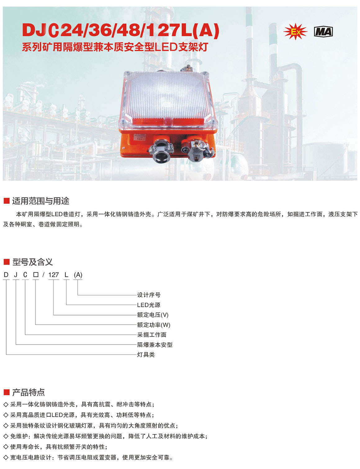 DJC24/36/48/127L(A)系列矿用隔爆型兼本质安全型LED支架灯
