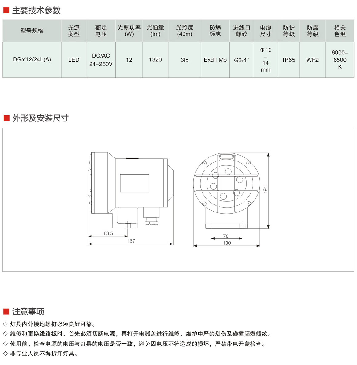 DGY12/24L(A)系列矿用隔爆型LED机车灯