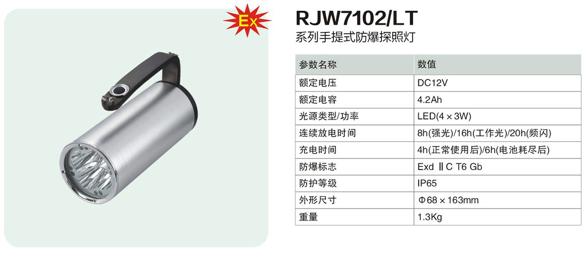 RJW7102/LT系列手提式防爆探照灯(ⅡC)