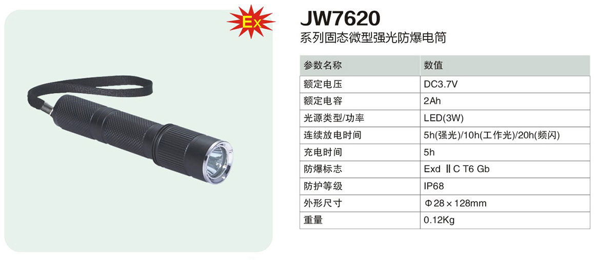 JW7602系列固态微型强光防爆电筒(ⅡC)