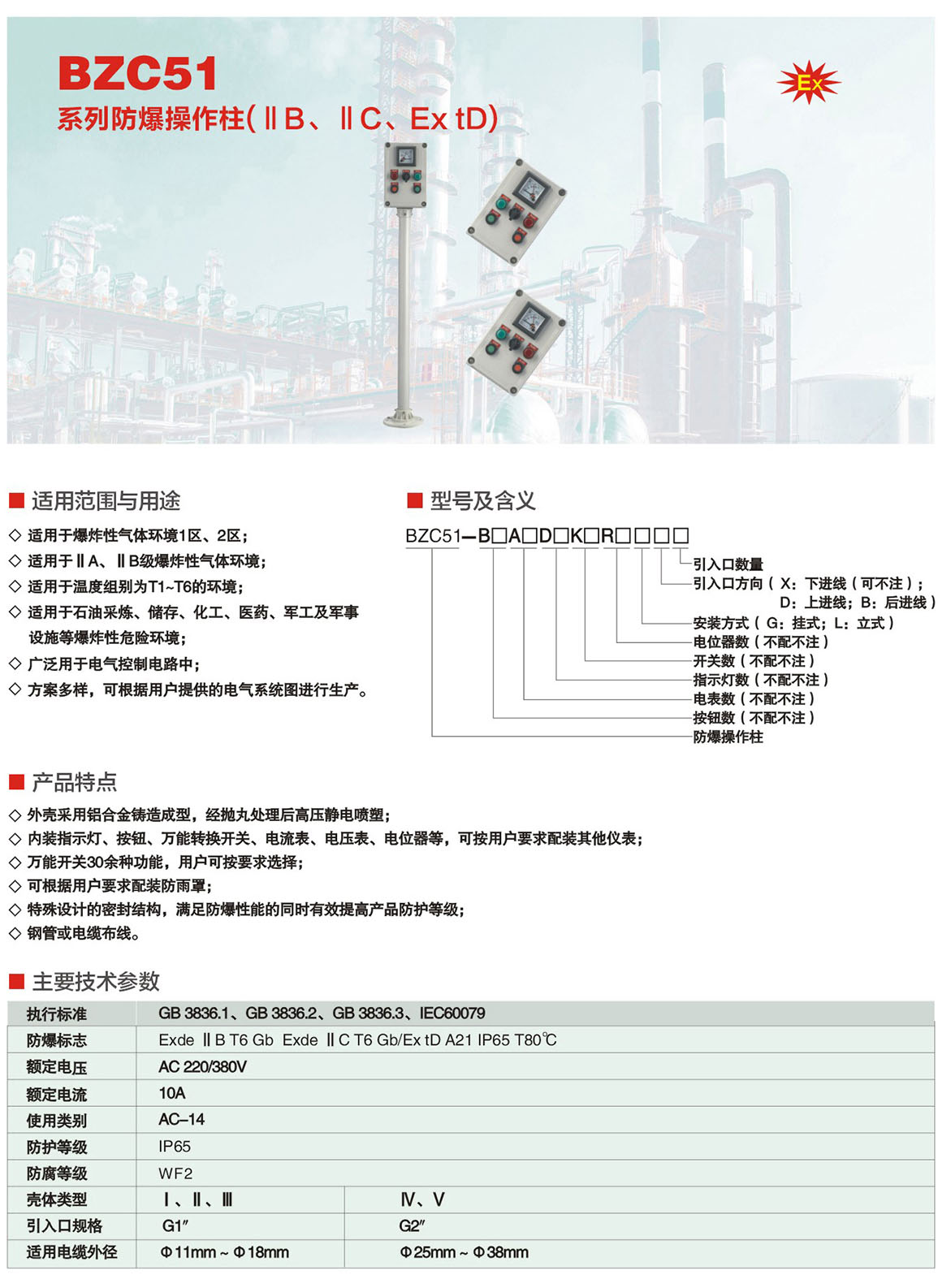 BZC51系列防爆操作柱(ⅡB、ⅡC、Ex tD)
