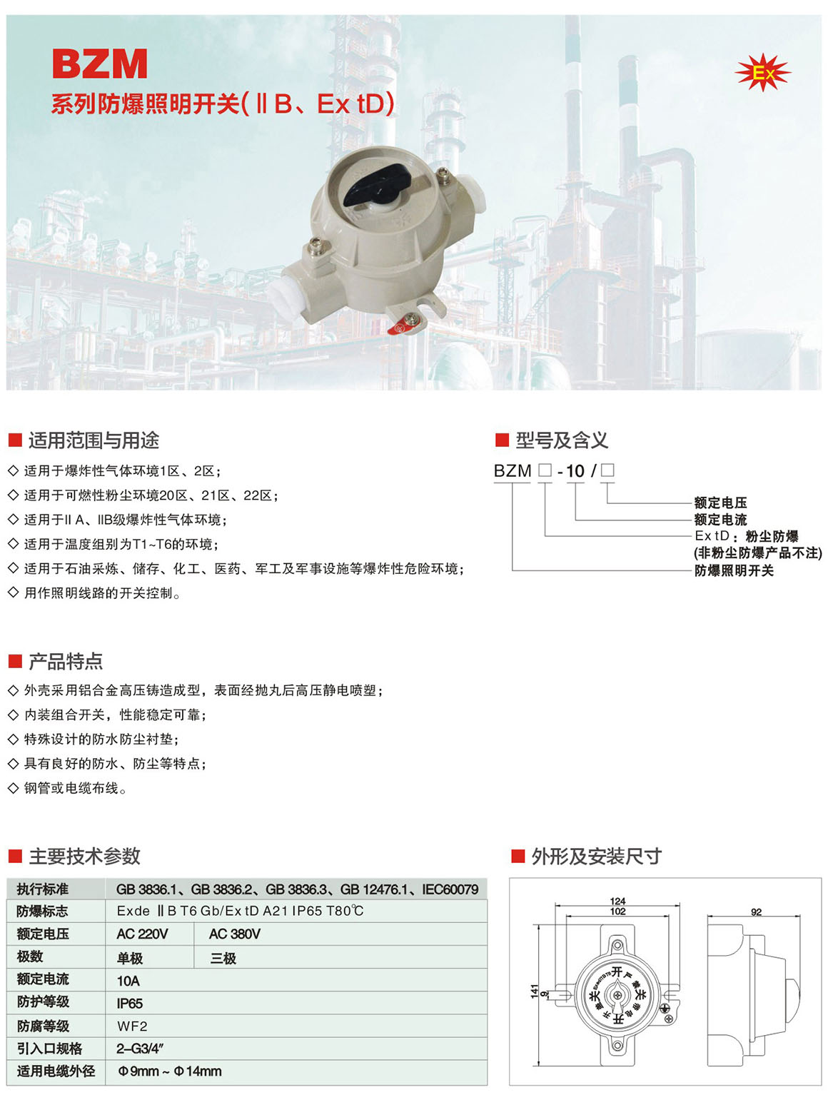BZM系列防爆照明开关(ⅡB、Ex tD)